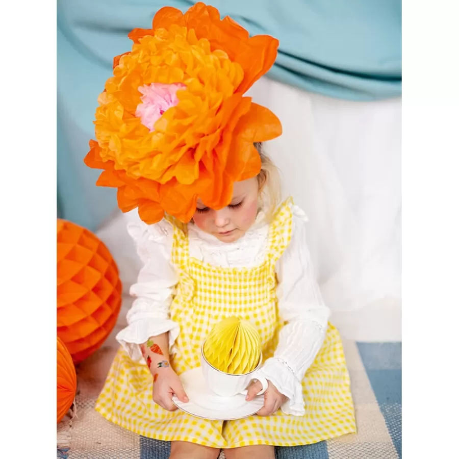 Χάρτινα Λουλούδια από pom pom φούξια/πορτοκαλί/κίτρινο - 3τμχ.