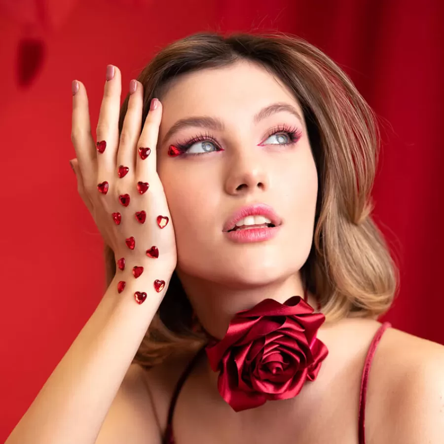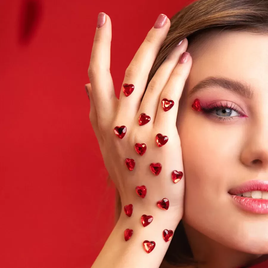 Αυτοκόλλητα mini καρδούλες κόκκινες πλαστικές.