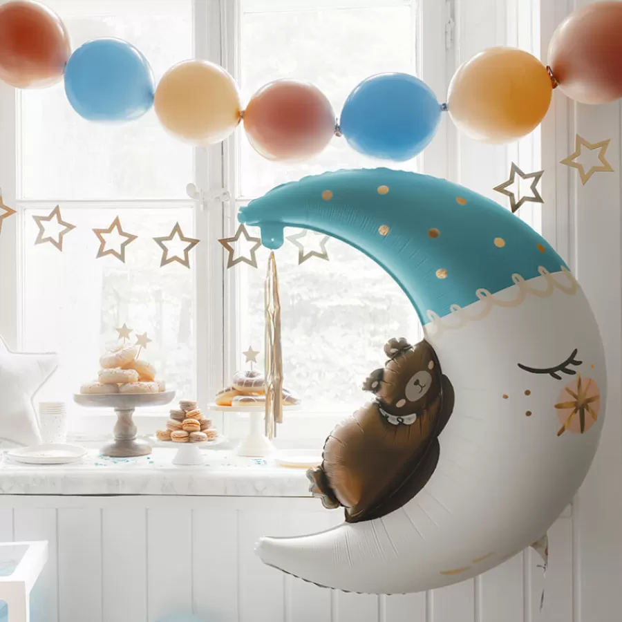 Μπαλόνι Μισοφέγγαρο κρεμ/σιέλ με αρκουδάκι