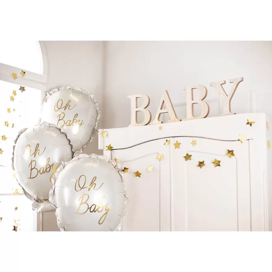 Μπαλόνι foil ματ κρεμ σε σχήμα μπαλονιού που γράφει "Oh Baby" με χρυσά γράμματα.