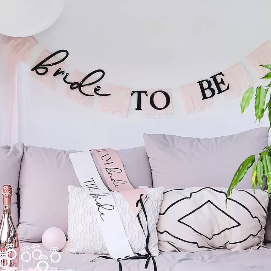 Γιρλάντα "Bride to Be" μαύρη με ροζ κρόσια