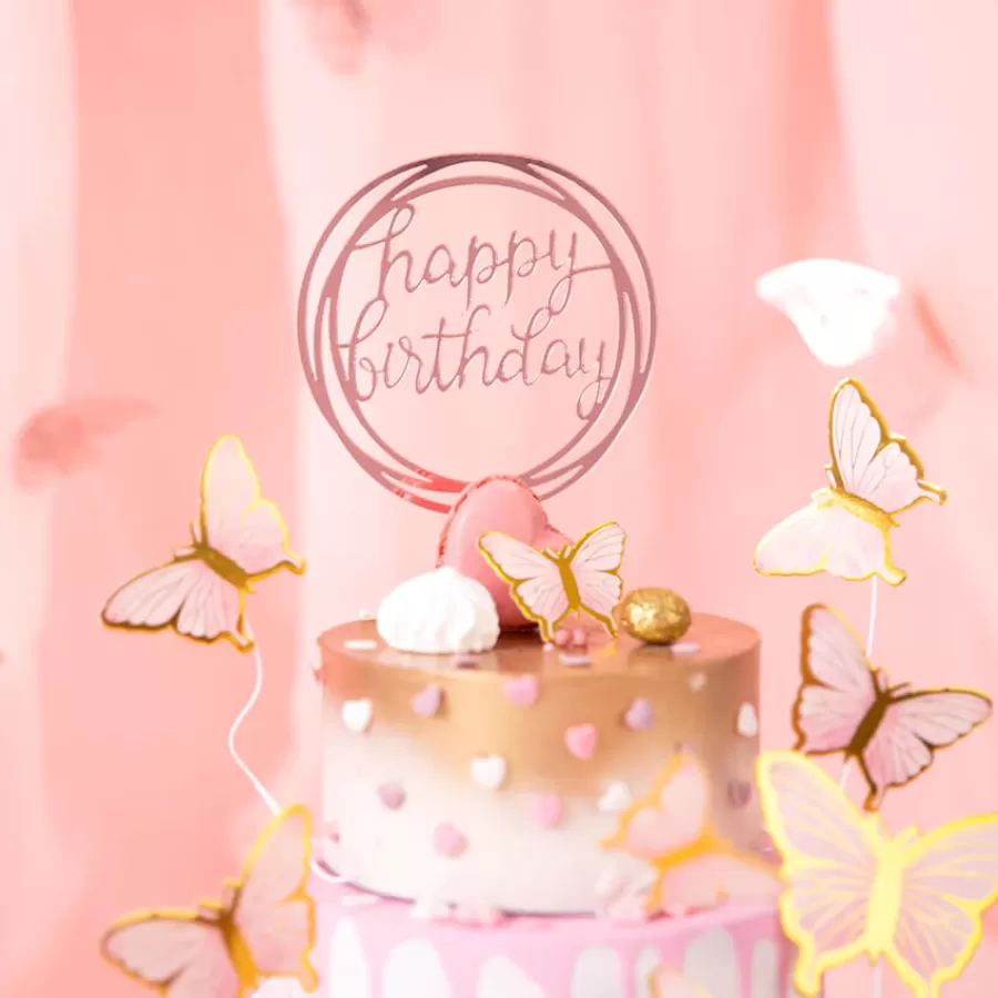 Διακοσμητικό για τούρτα "Happy Birthday" στρογγυλό rose gold