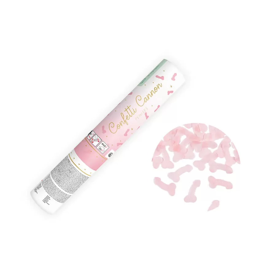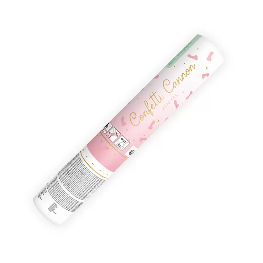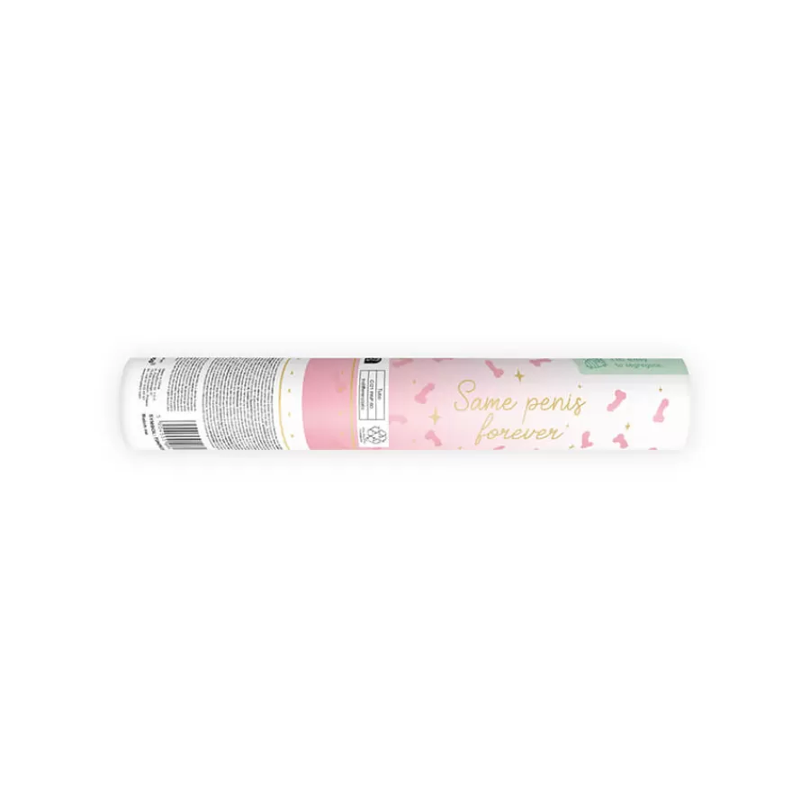 Μίνι κανονάκι με χάρτινο κονφετί Penis σε ροζ παστέλ χρώμα.