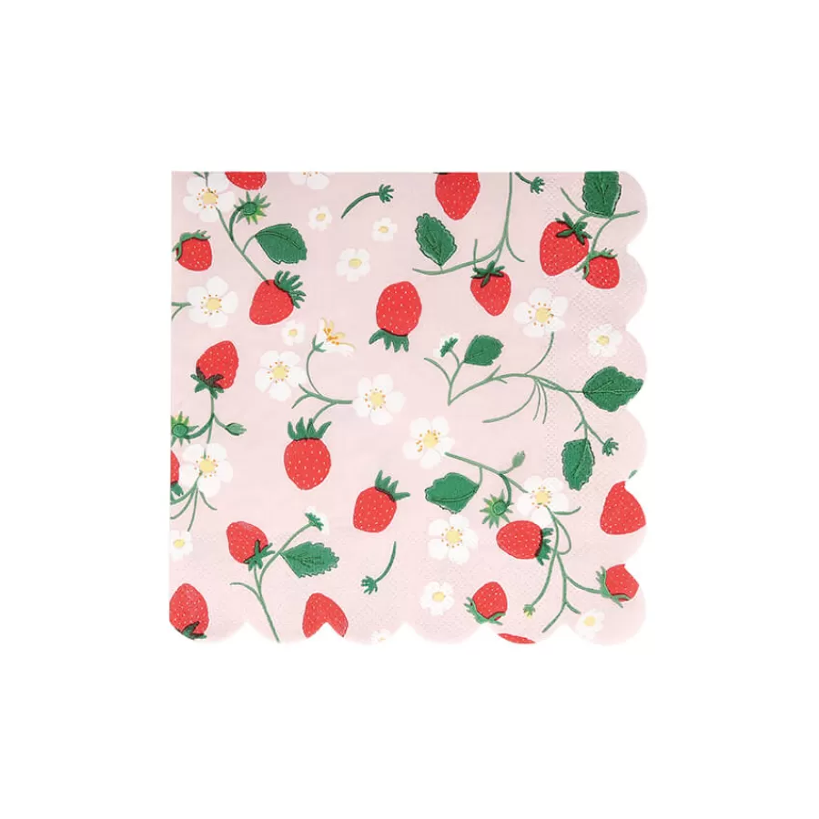 Χαρτοπετσέτες cocktail ροζ με φράουλες - 16τμχ.