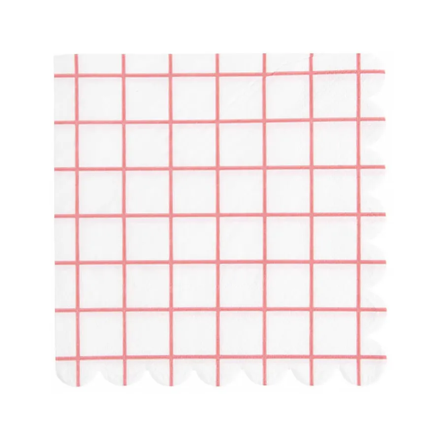 3φυλλες χαρτοπετσέτες καρό σε λευκό & neon κοραλί χρώμα.