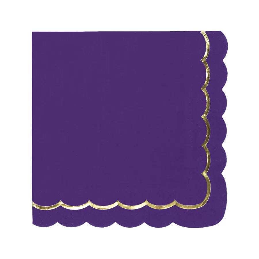 Χαρτοπετσέτες μοβ με χρυσή λεπτομέρεια - 16τμχ.