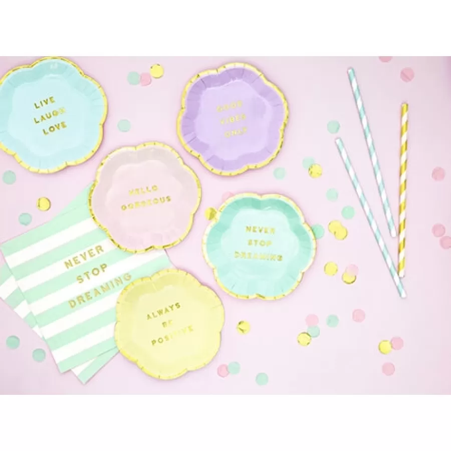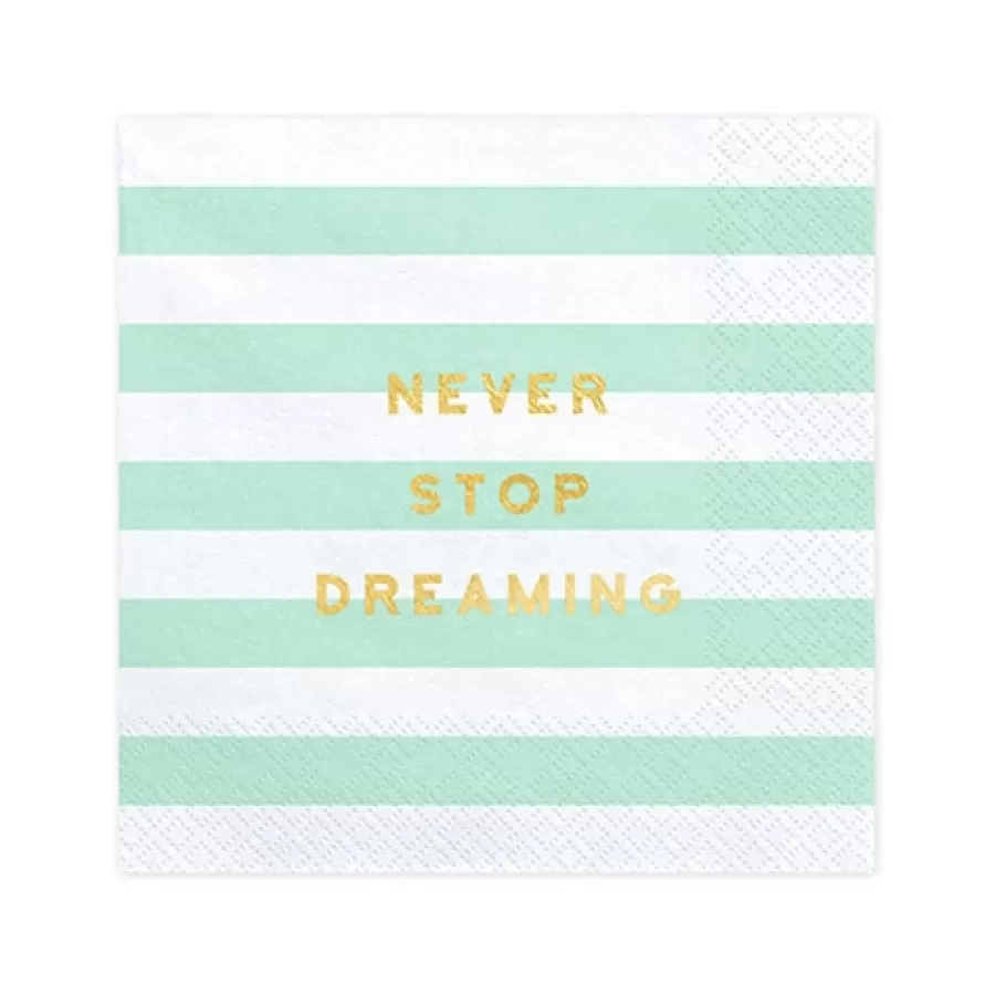 3φυλλες χαρτοπετσέτες ριγέ βεραμάν που γράφουν "Never Stop Dreaming" με χρυσά foil γράμματα.
