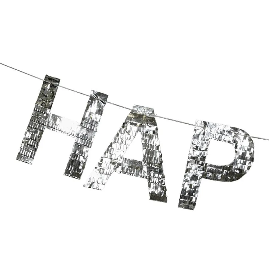Χάρτινη γιρλάντα "Happy Birthday" με foil ασημί κρόσια.