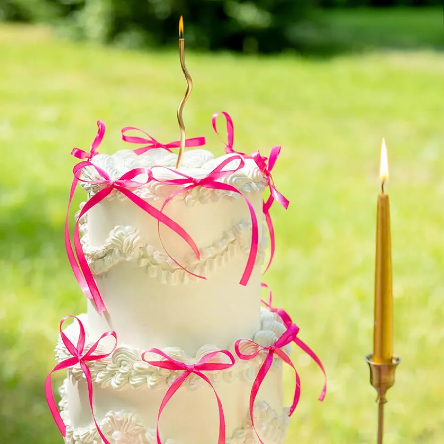 Διακοσμητικά στικ για τούρτα Φιογκάκια φούξια από σατέν κορδέλα.