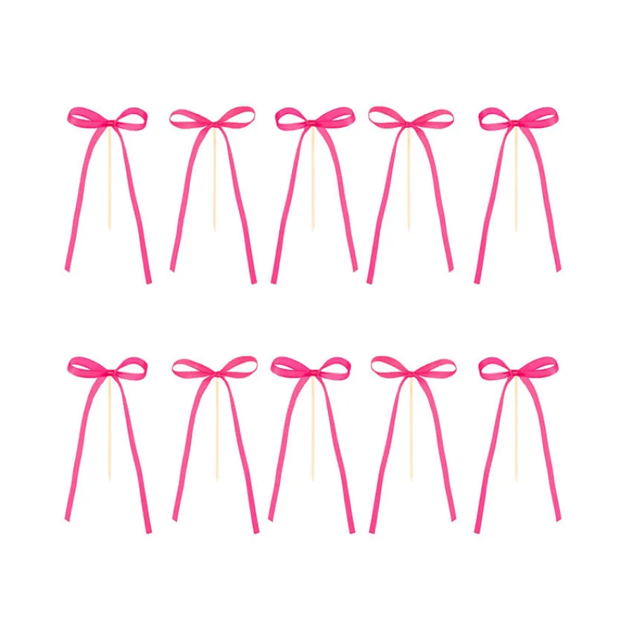 Διακοσμητικά στικ για τούρτα Φιογκάκια φούξια - 10τμχ.