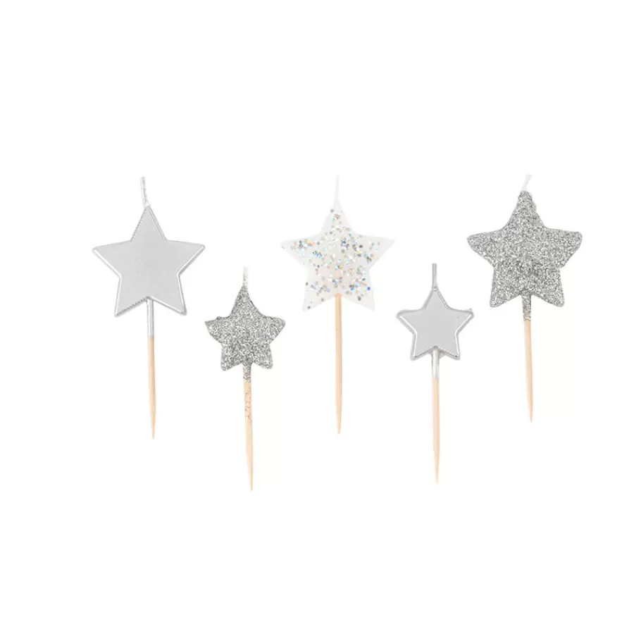 Κεράκια αστεράκια μικρά & μεγάλα ασημί - 5τμχ.