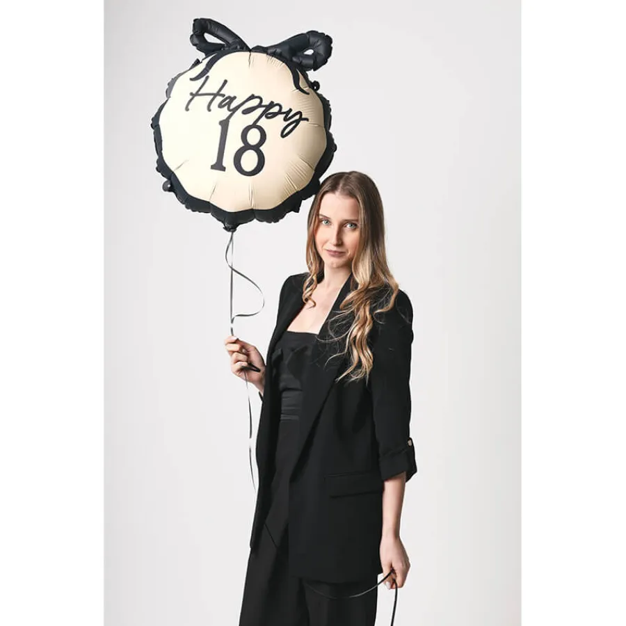 Μπαλόνι "Happy 18" με φιόγκο κρεμ/μαύρο