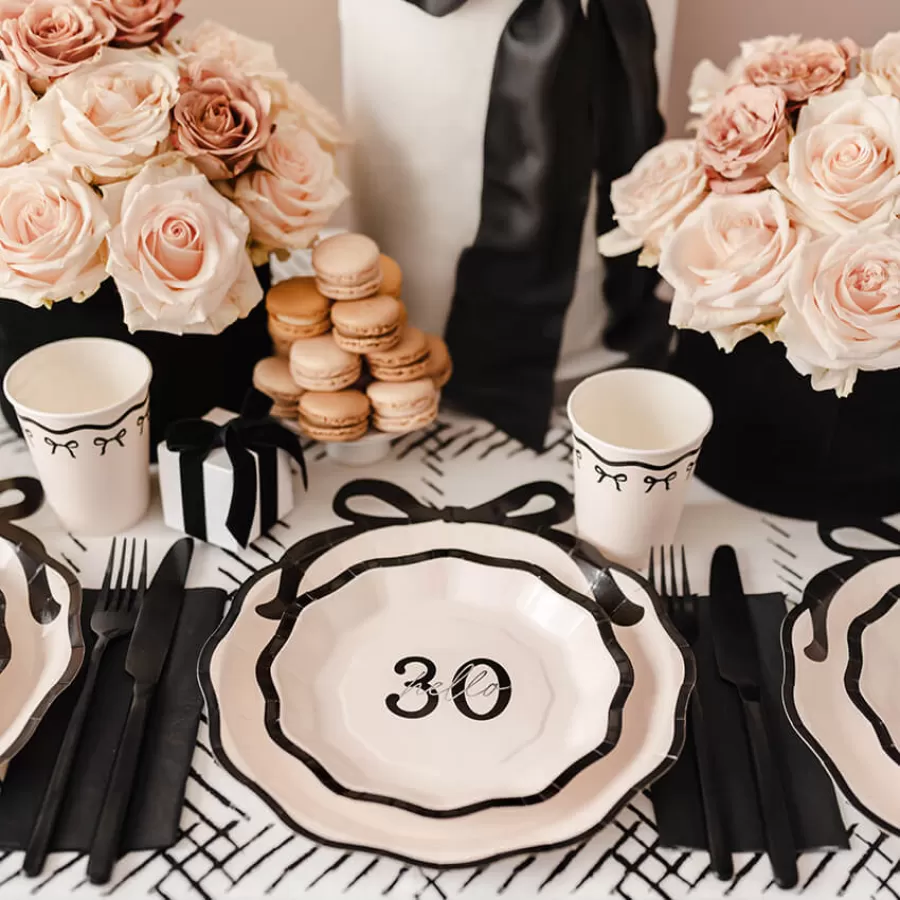 Χάρτινα πιάτα γλυκού ''Hello 30" κρεμ/μαύρο - 6τμχ.