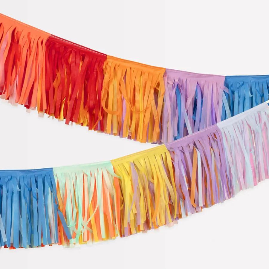 Χάρτινη γιρλάντα με πολύχρωμα κρόσια: κοραλί neon, κόκκινα, πορτοκαλί, ροζ, μπλε, φυστικί, κίτρινα, λιλά & σιέλ.