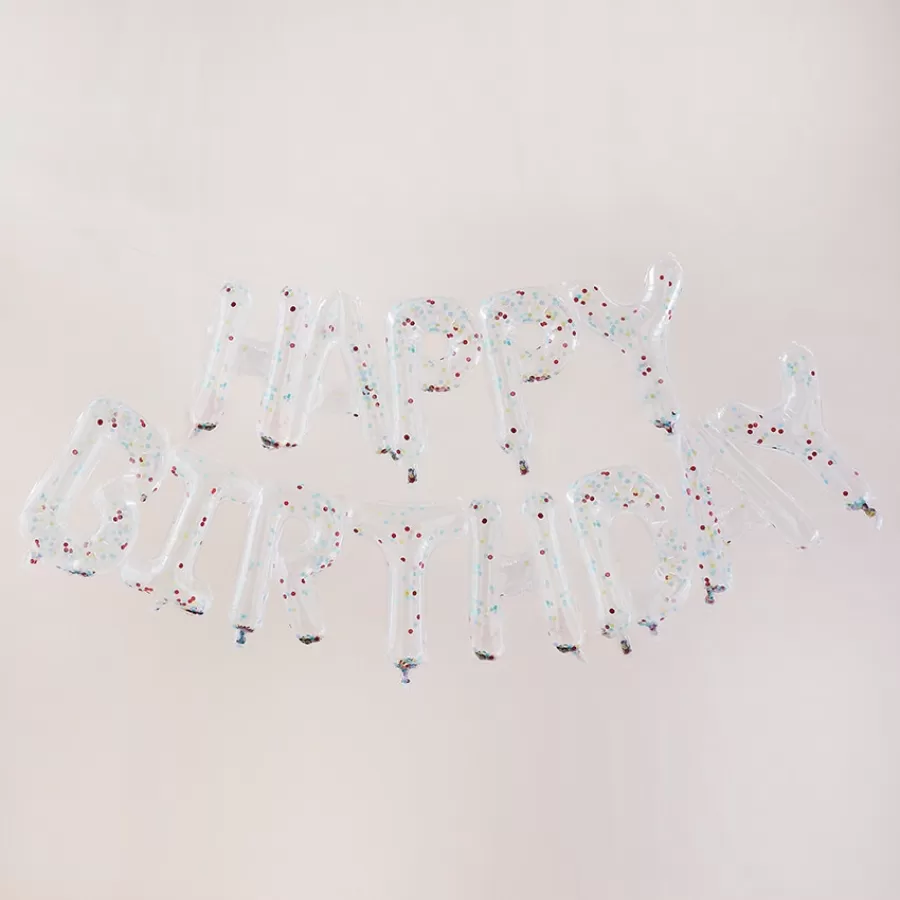 Σετ μπαλόνια γράμματα "Happy Birthday" διάφανα με πολύχρωμο κονφετί