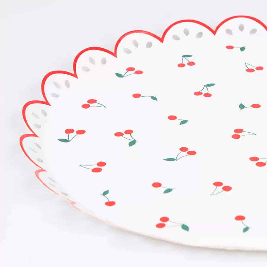 Χάρτινα πιάτα με Κερασάκια, κόκκινο περίγραμμα και υπέροχο τελείωμα με τρυπούλες που θυμίζει κέντημα!