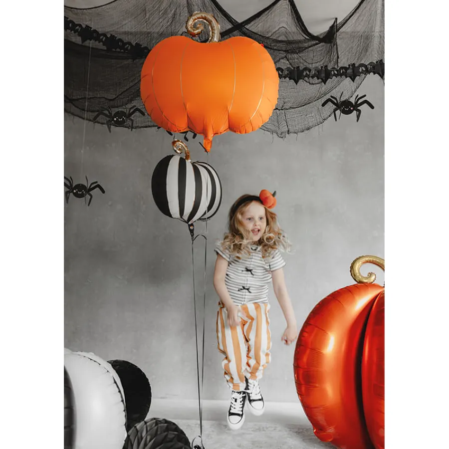 Μπαλόνι foil Κολοκύθα με μπεζ & μαύρες ρίγες και χρυσό κοτσάνι.