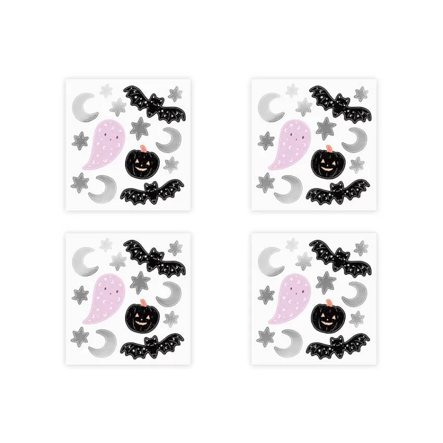 Αυτοκόλλητα για τον τοίχο σε 5 διαφορετικά Halloween σχέδια: αστεράκι, μισοφέγγαρο, νυχτερίδα, κολοκύθα & φαντασματάκι.