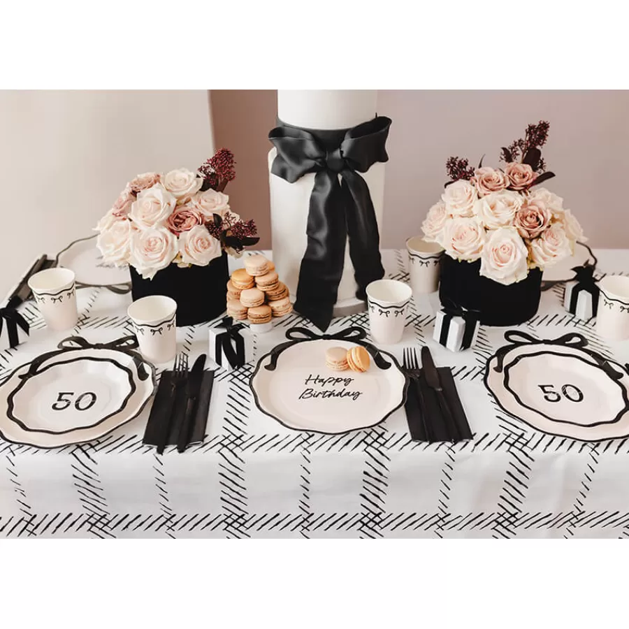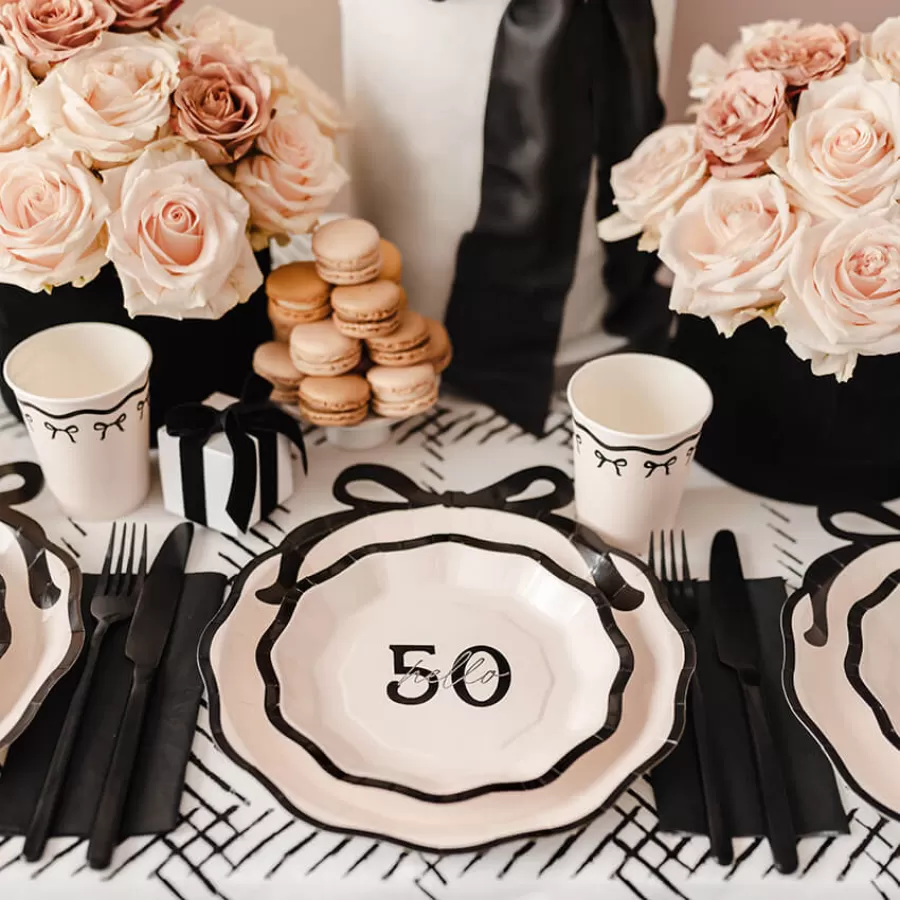 Χάρτινα πιάτα γλυκού ''Hello 50" κρεμ/μαύρο - 6τμχ.