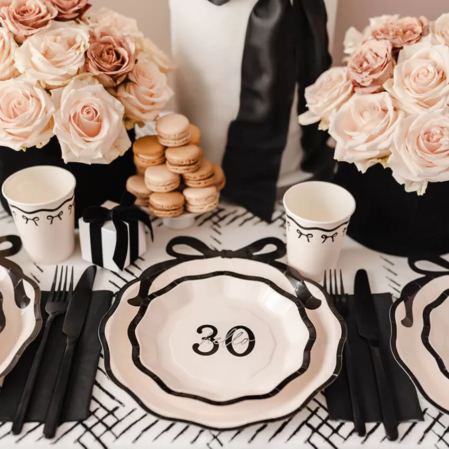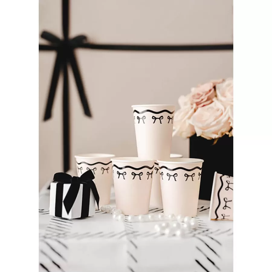 Χάρτινα ποτήρια κρεμ με μαύρα φιογκάκια - 6τμχ.