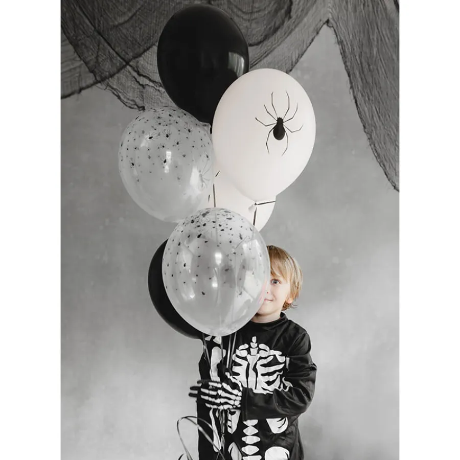 Μπαλόνια μαύρα/off-white/διάφανα με αράχνες - 6τμχ.