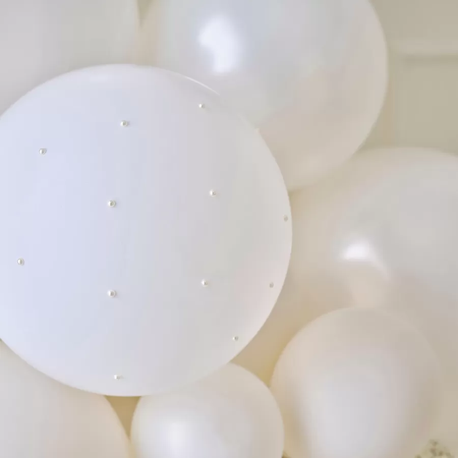 Σύνθεση από μπαλόνια κρεμ/κρεμ περλέ/λευκά & πέρλες αυτοκόλλητες
