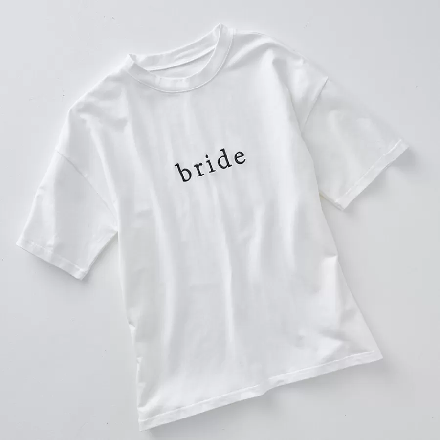 Λευκό T-Shirt "bride" με μαύρα κεντητά γράμματα.