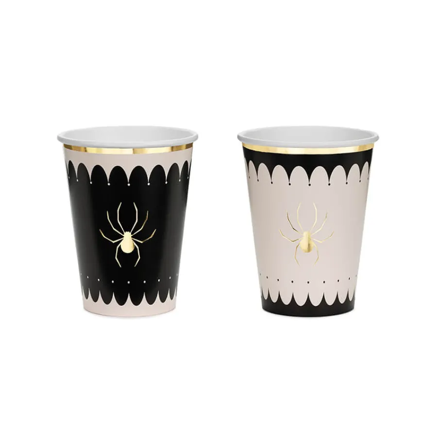 Χάρτινα ποτήρια μπεζ & μαύρα με χρυσή αράχνη - 6τμχ.