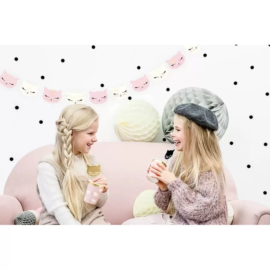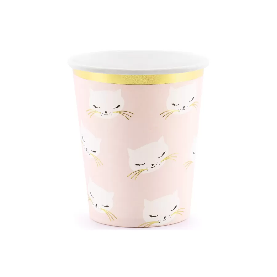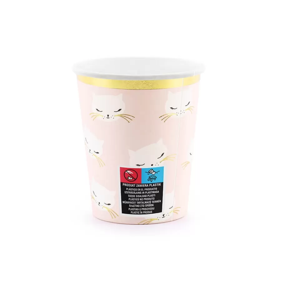 Χάρτινα ποτήρια ροζ με γατούλες και χρυσές λεπτομέρειες.