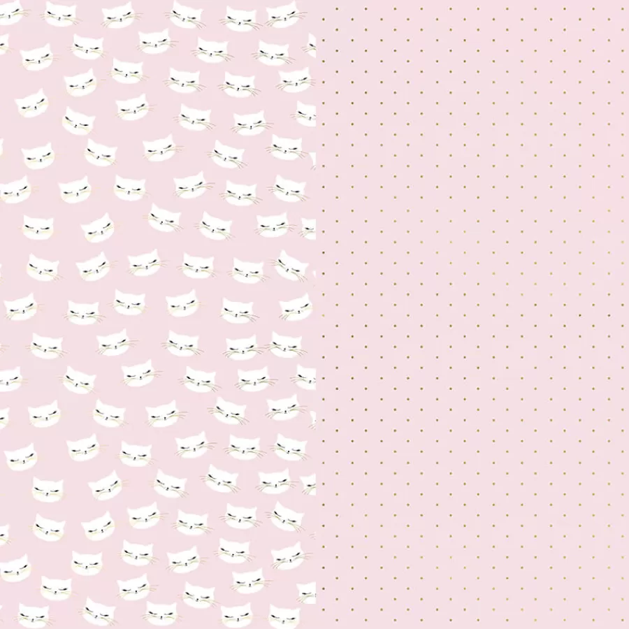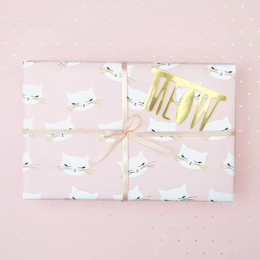 Ροζ χαρτί περιτυλίγματος σε δύο σχέδια: με γατούλες & με χρυσό πουά.