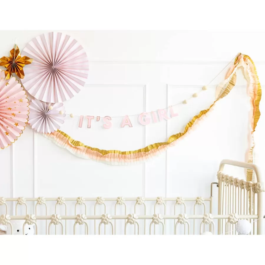 Μίνι χάρτινη γιρλάντα "It's a girl" σε ροζ χρώμα με κρεμ πον πον.