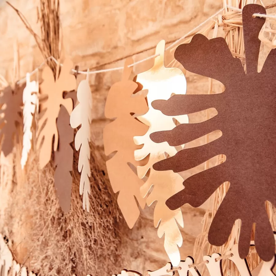 Χάρτινη γιρλάντα με τροπικά φύλλα σε διάφορα σχέδια και χρώματα (kraft, καφέ, λευκό & χρυσό) για τη διακόσμηση του πάρτυ.