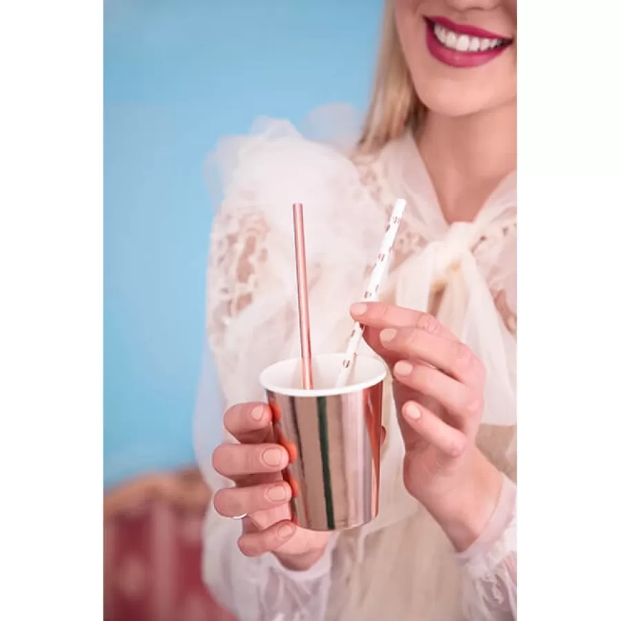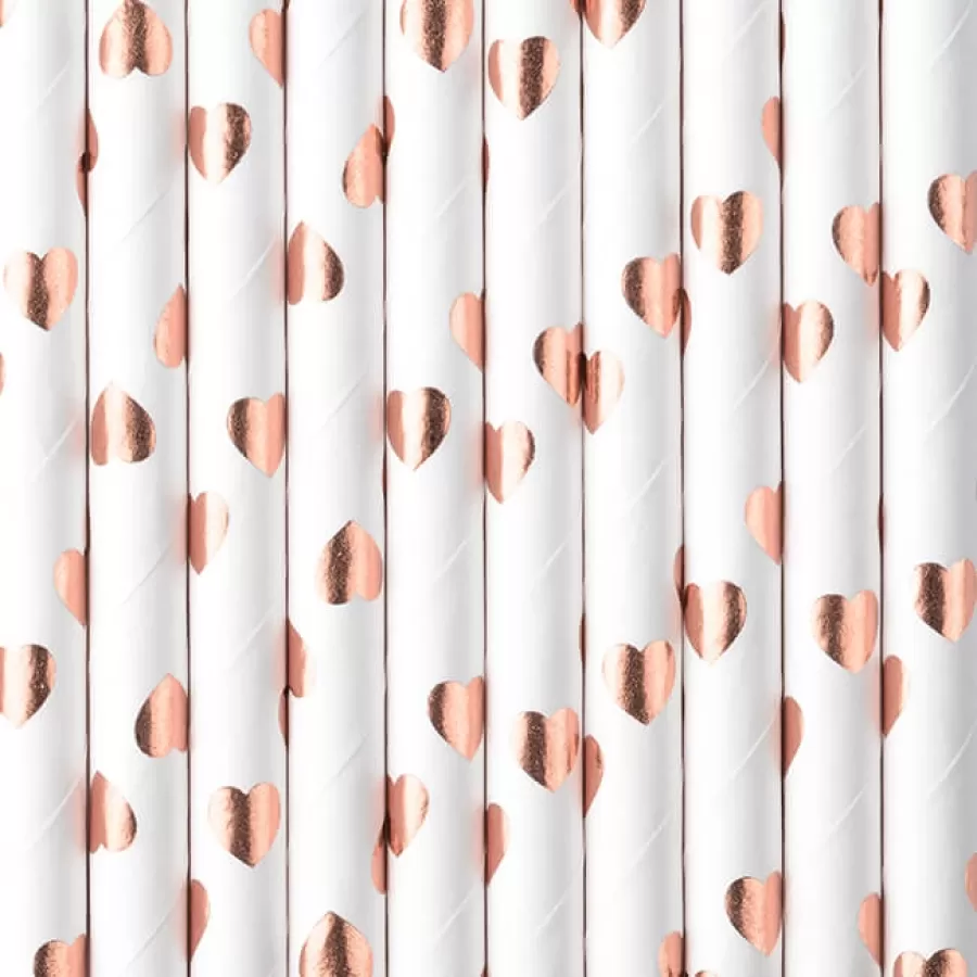 Χάρτινα καλαμάκια λευκά με rose gold καρδούλες – 10τμχ.