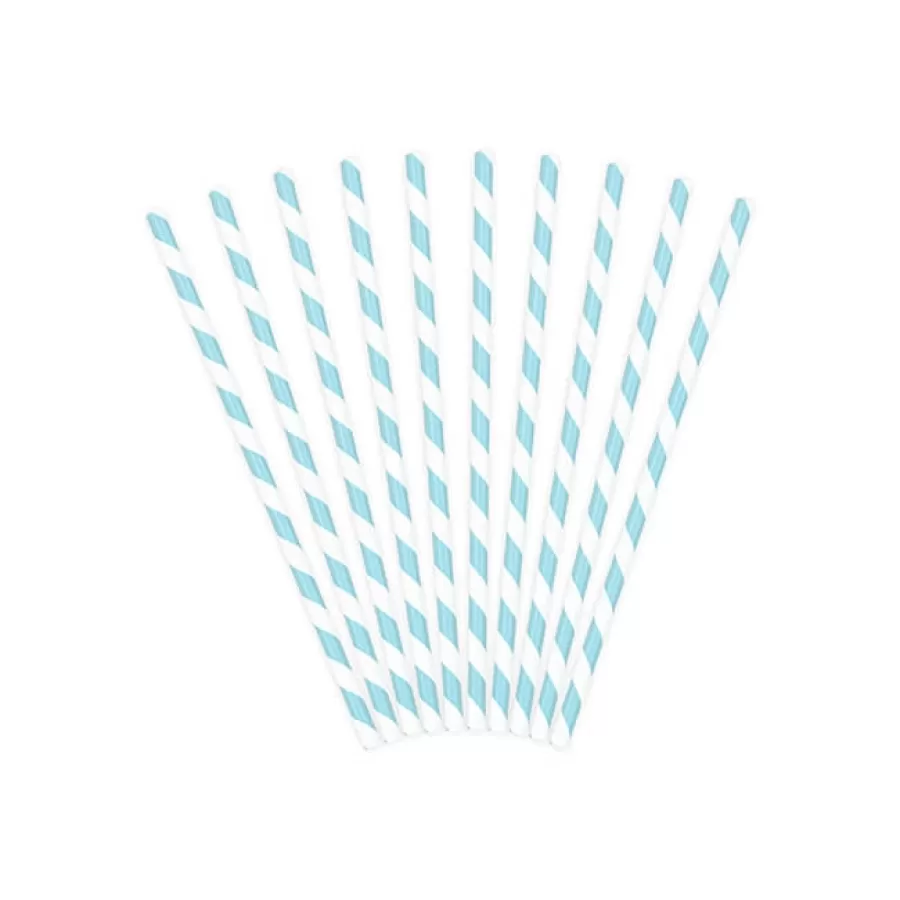 Χάρτινα καλαμάκια ριγέ σιέλ.