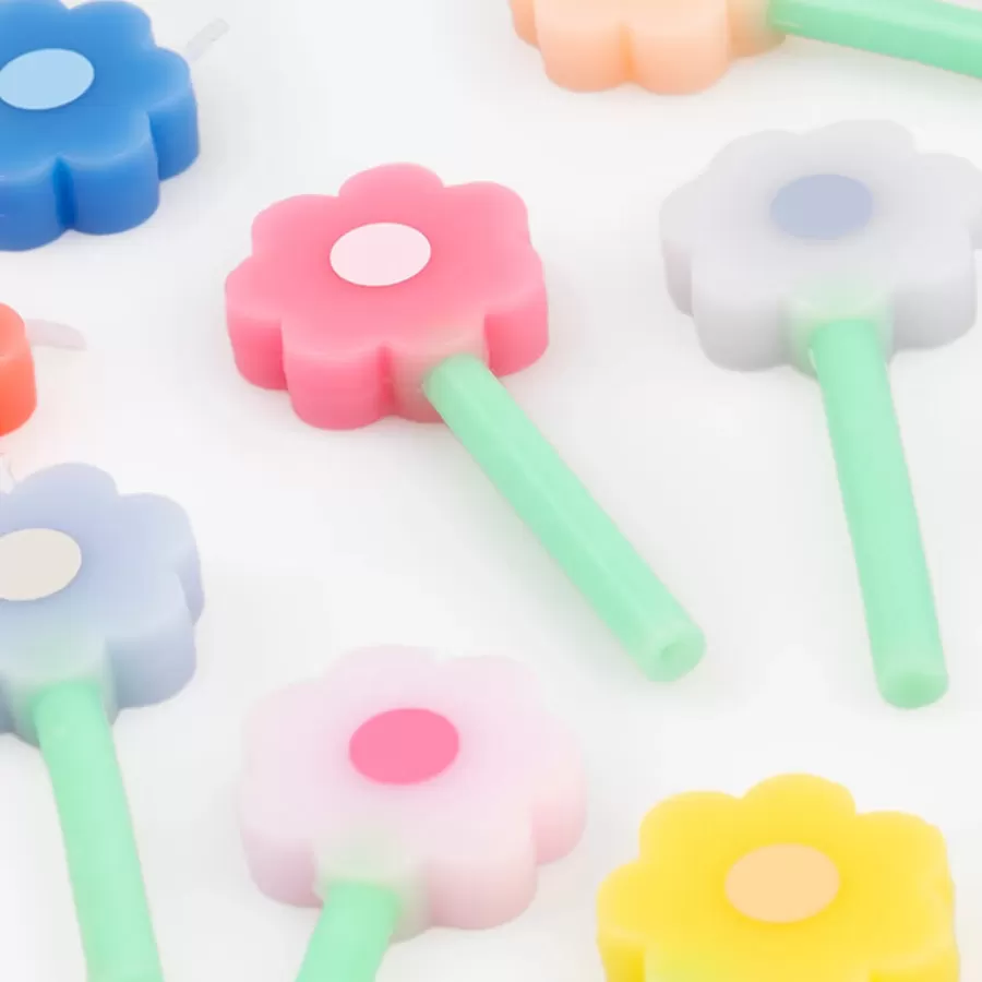 Μίνι κεράκια Μαργαρίτες σε αποχρώσεις του ροζ, του πορτοκαλί, του κίτρινου & του μπλε.