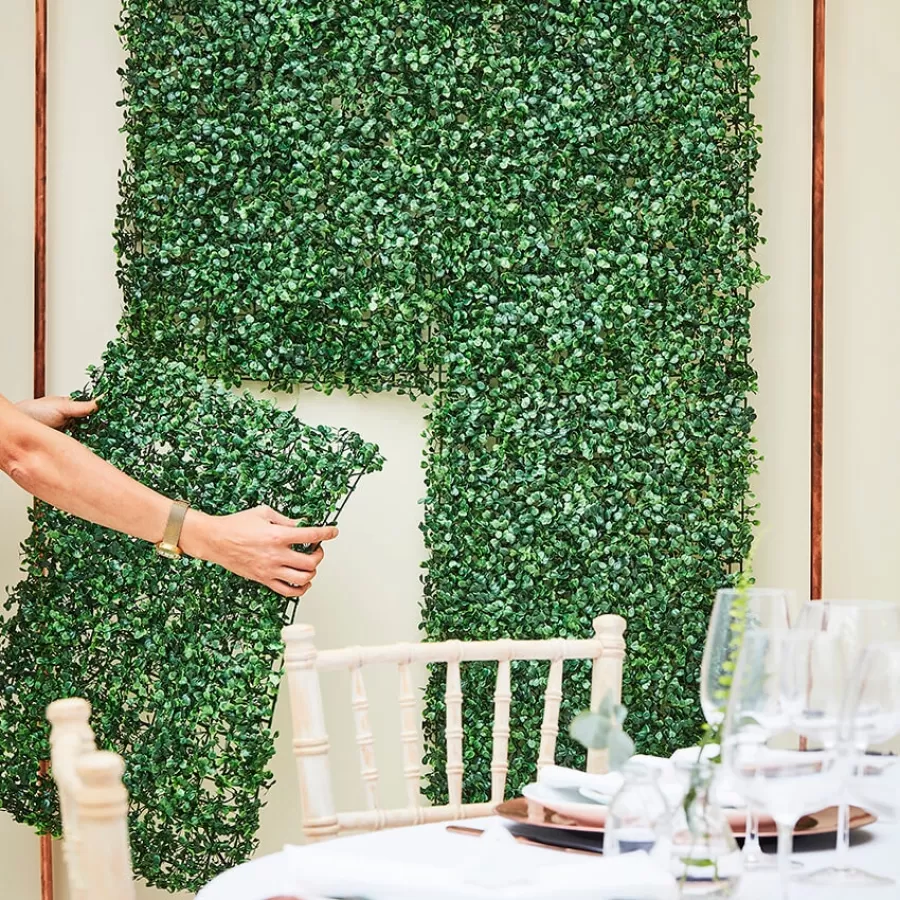 Πάνελ με πράσινα, τεχνητά φύλλα για τη διακόσμηση τοίχου ή τη δημιουργία ενός backdrop για φωτογραφίσεις.