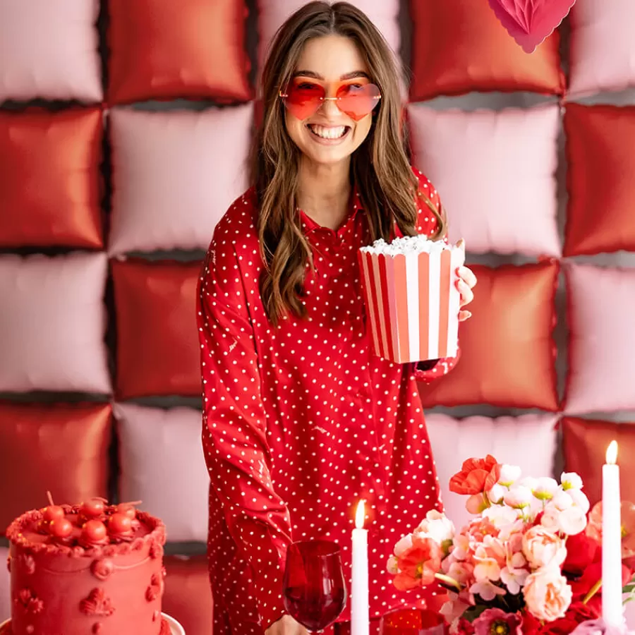 Κουτάκια για ποπ κορν κόκκινα/ροζ ριγέ - 6τμχ.