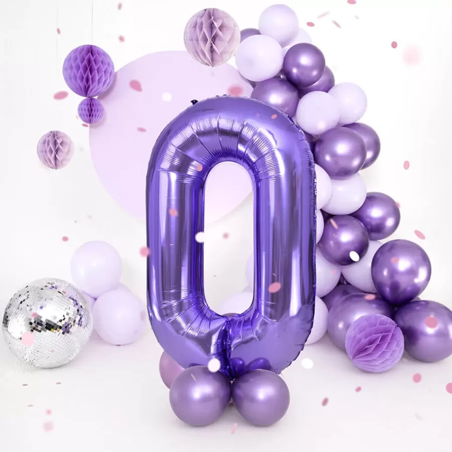 Μπαλόνι foil αριθμός 0 σε μοβ χρώμα.