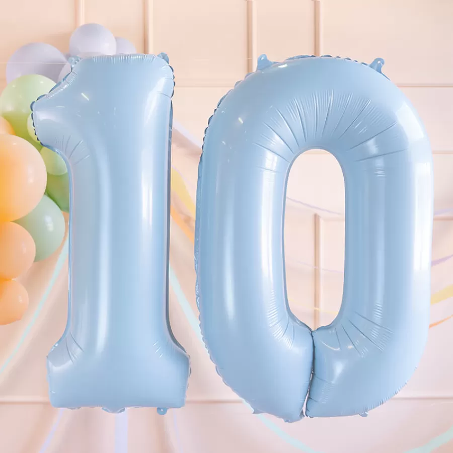 Μπαλόνι foil αριθμός 0 σε παστέλ σιέλ χρώμα.