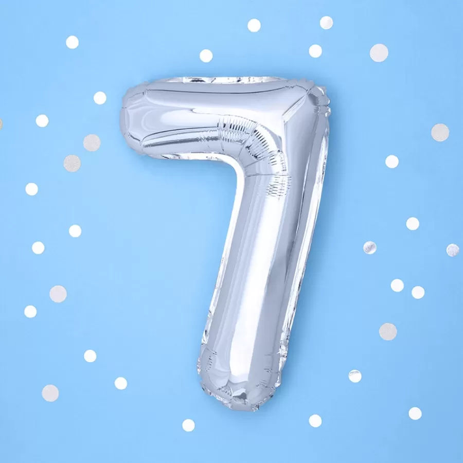 Μπαλόνι foil αριθμός 7 ασημί για τη διακόσμηση του πάρτυ.
