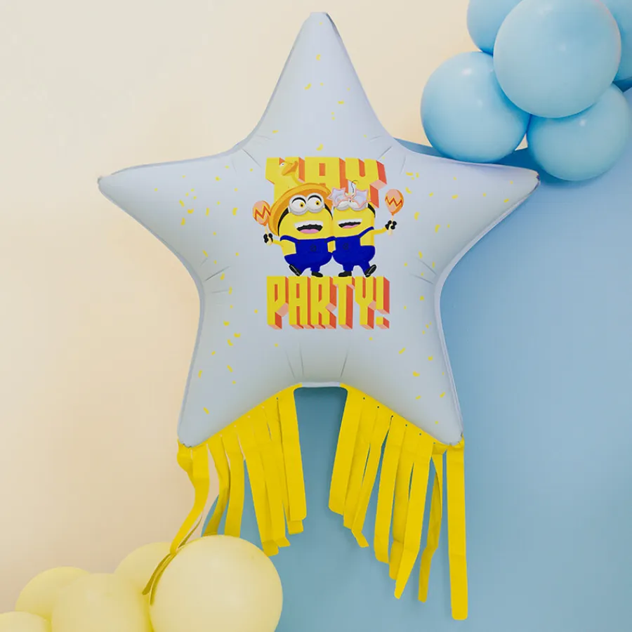 Σιέλ μπαλόνι foil αστέρι με χαρούμενο σχέδιο Minions και κίτρινα κρόσια.