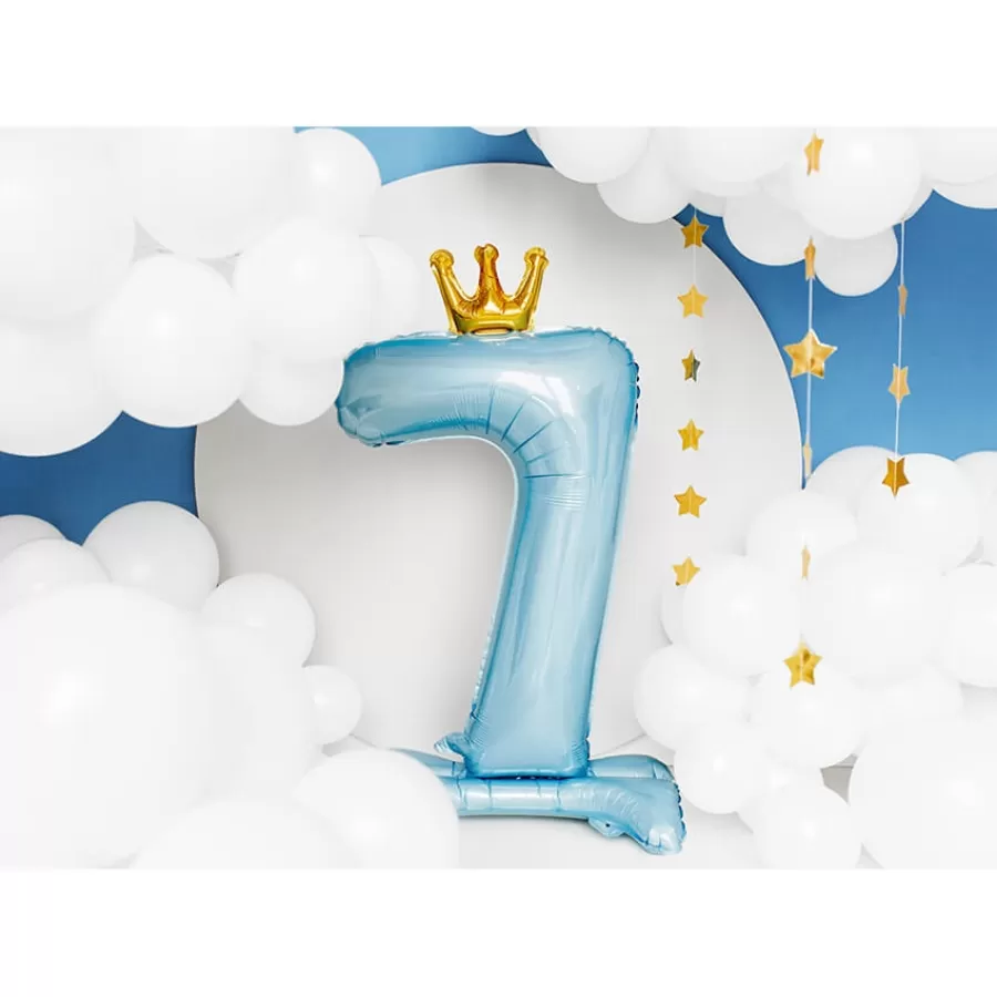 Μπαλόνι με βάση - Αριθμός 7 σιέλ με κορώνα