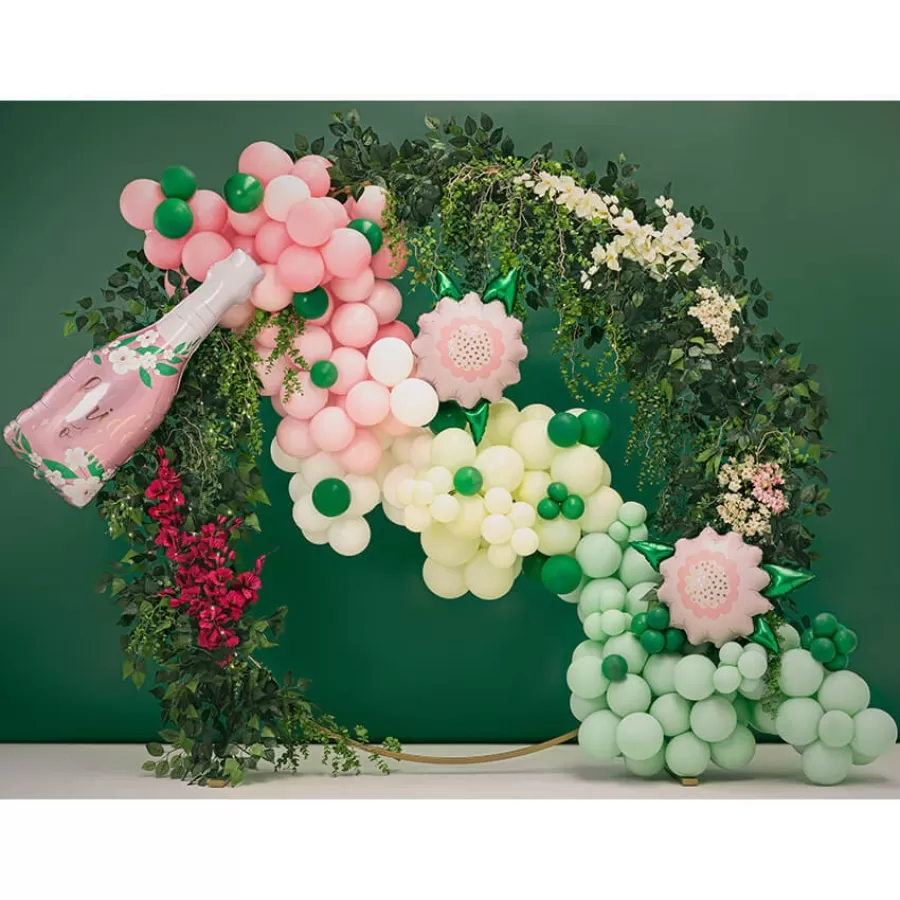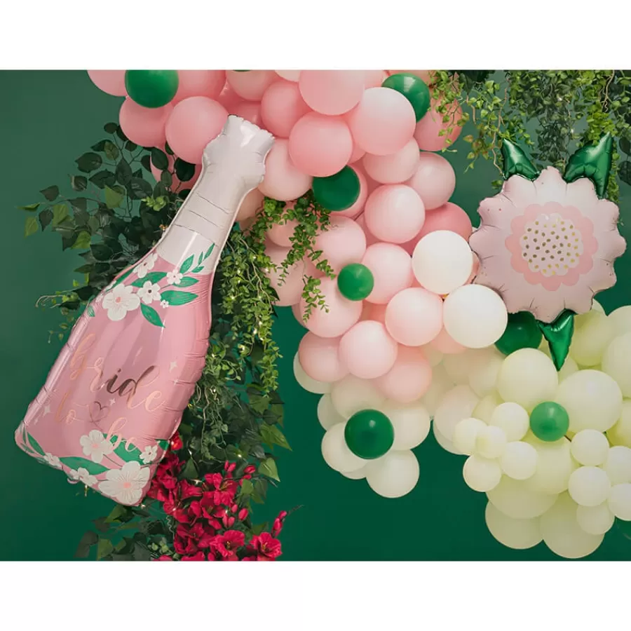 Ροζ μπαλόνι foil σε σχήμα μπουκαλιού σαμπάνιας με λουλούδια, το οποίο γράφει "Bride to be" με rose gold γράμματα.