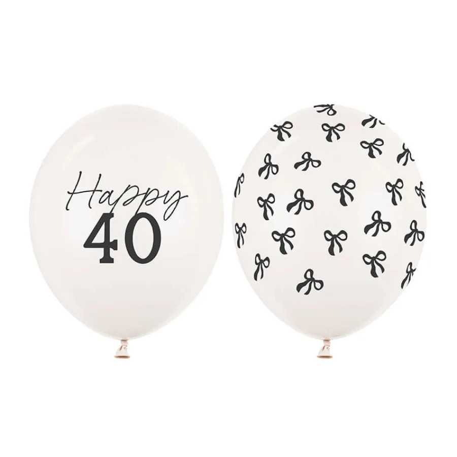 Σετ μπαλόνια σε χρώμα off white με τύπωμα μαύρα φιογκάκια & "Happy 40".