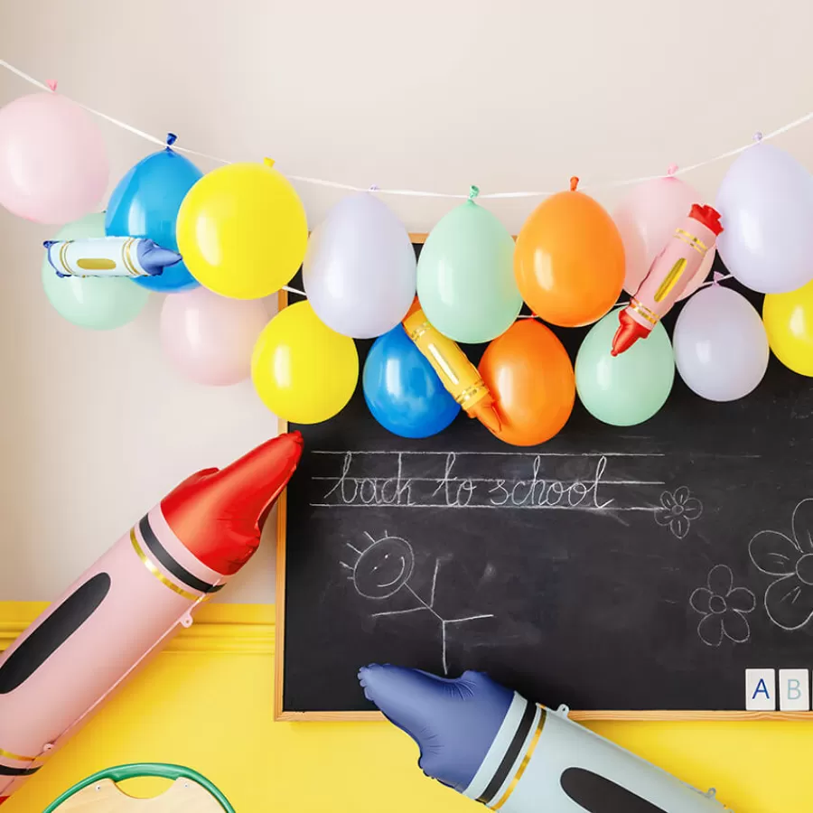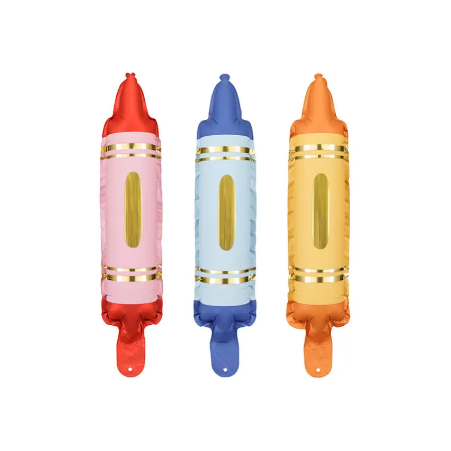 Μίνι μπαλόνια Κηρομπογιές σε τρεις συνδυασμούς χρωμάτων: ροζ/κόκκινο, σιέλ/μπλε & κίτρινο/πορτοκαλί.
