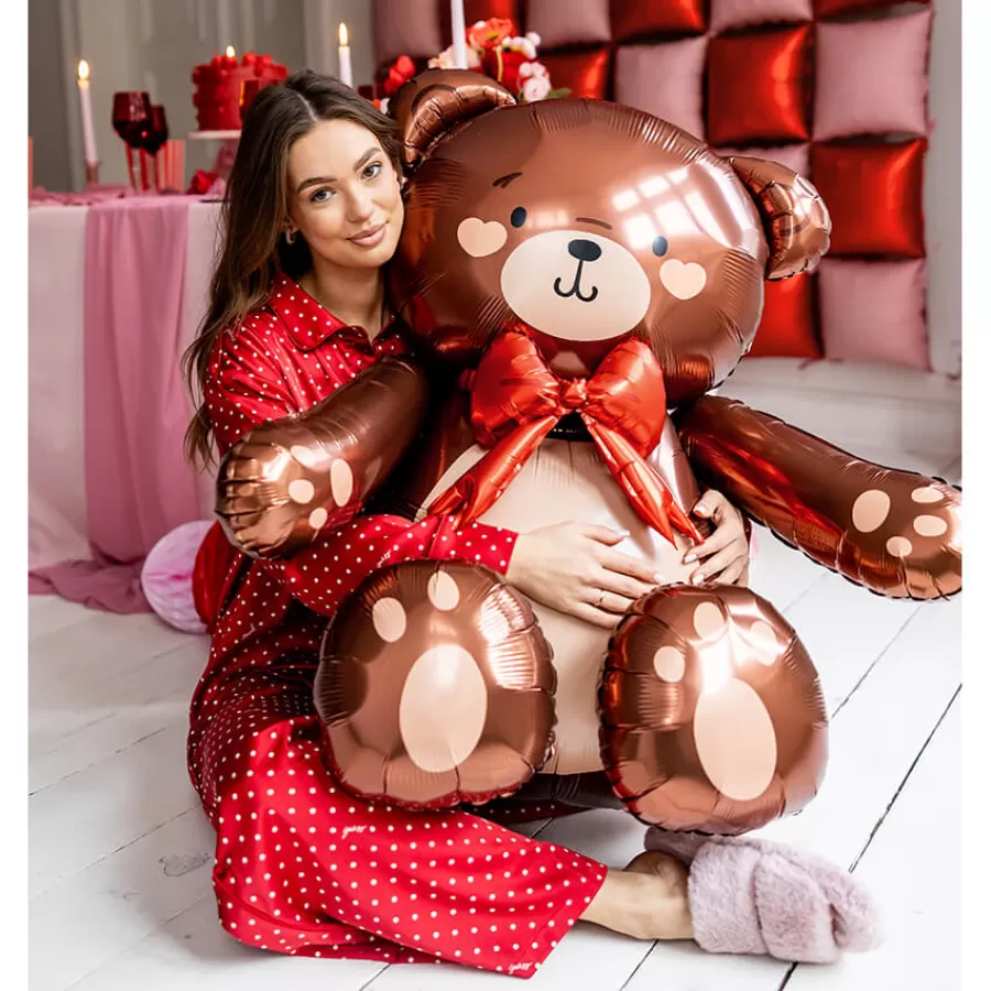Standing Balloon Teddy Bear με κόκκινο φιόγκο.