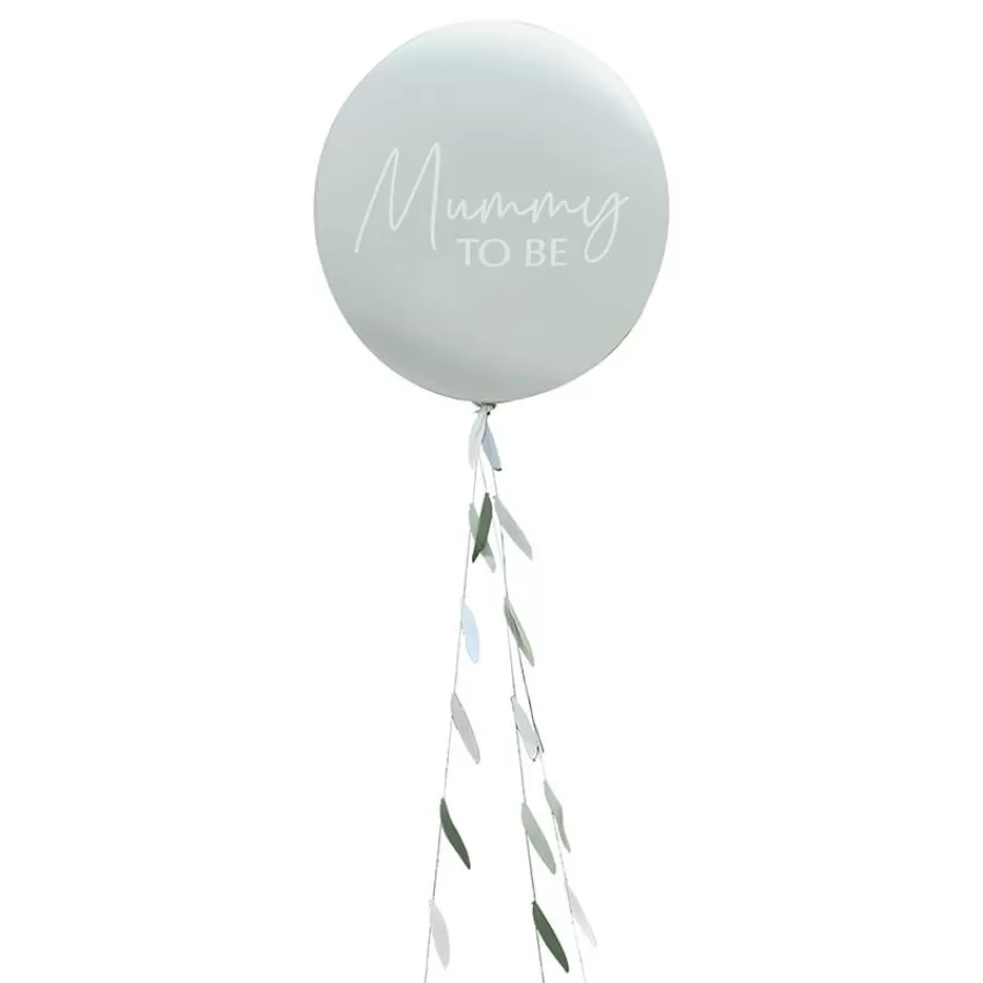 Μπαλόνι "Mummy to Be" γκριζοπράσινο με ουρά από φύλλα