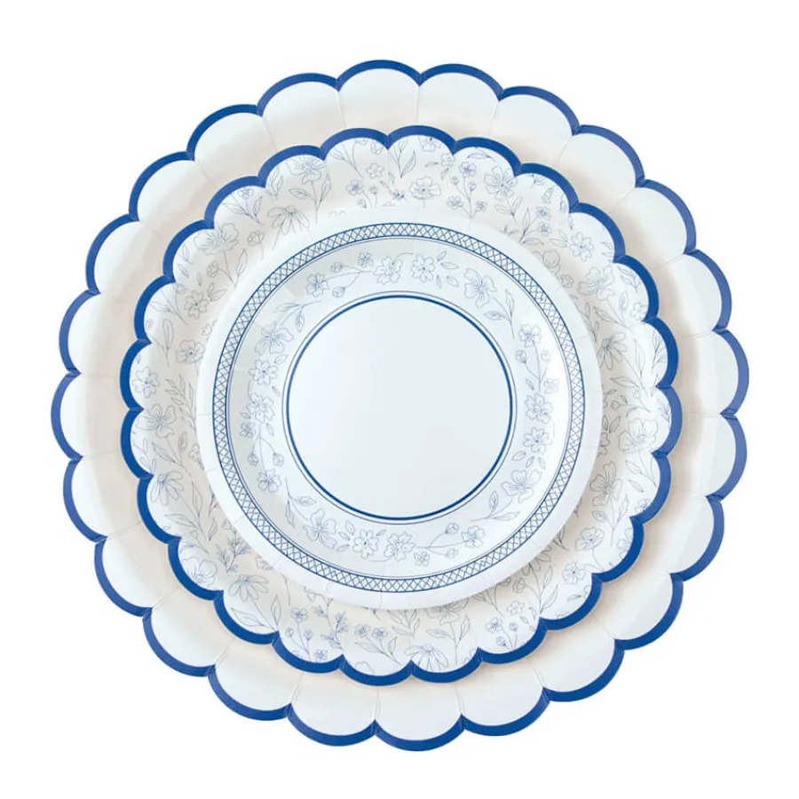 Χάρτινα πιάτα γλυκού Μπλε Λουλουδάκια - 8τμχ.