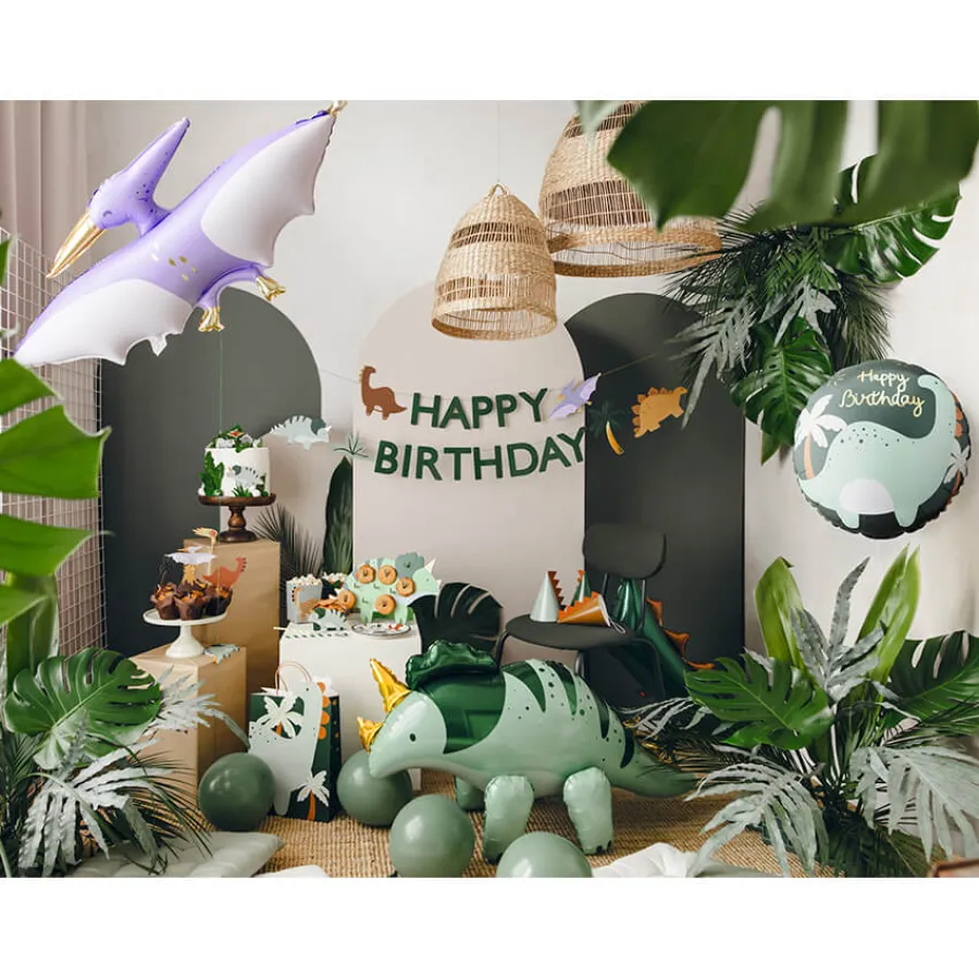 Μπαλόνι foil στρογγυλό "Happy Birthday" με σχέδιο τον Δεινόσαυρο.