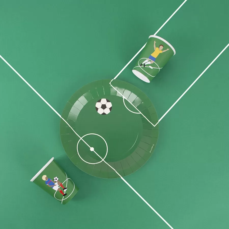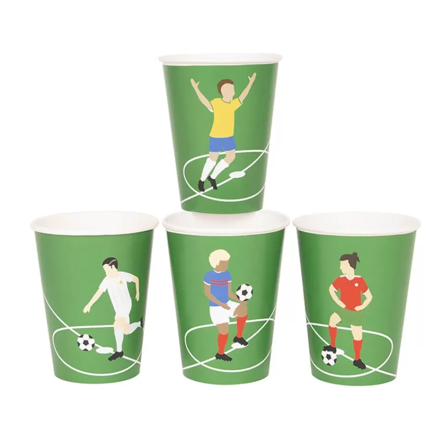 Πράσινα χάρτινα ποτήρια με ποδοσφαιριστές σε τέσσερα διαφορετικά σχέδια.